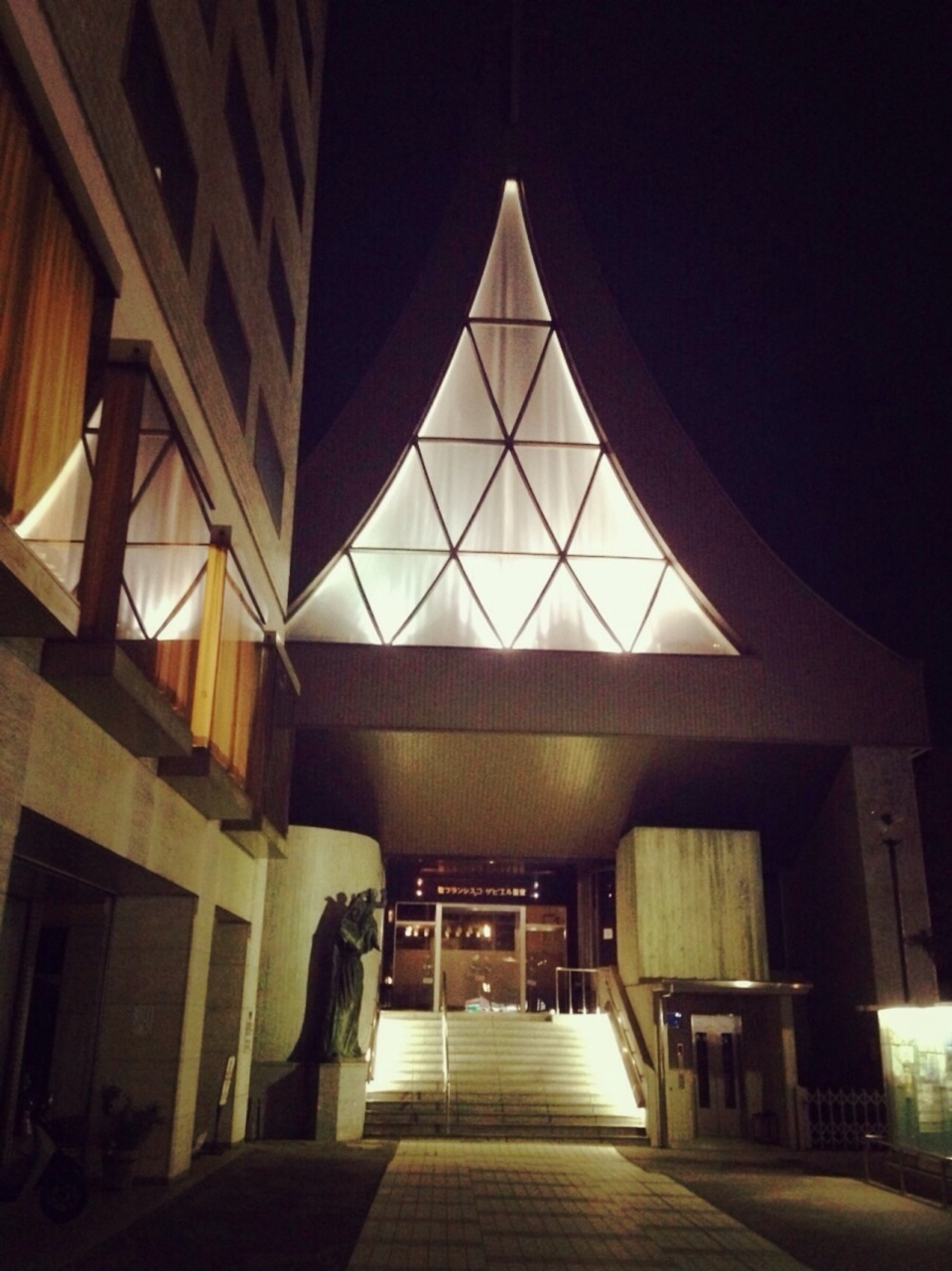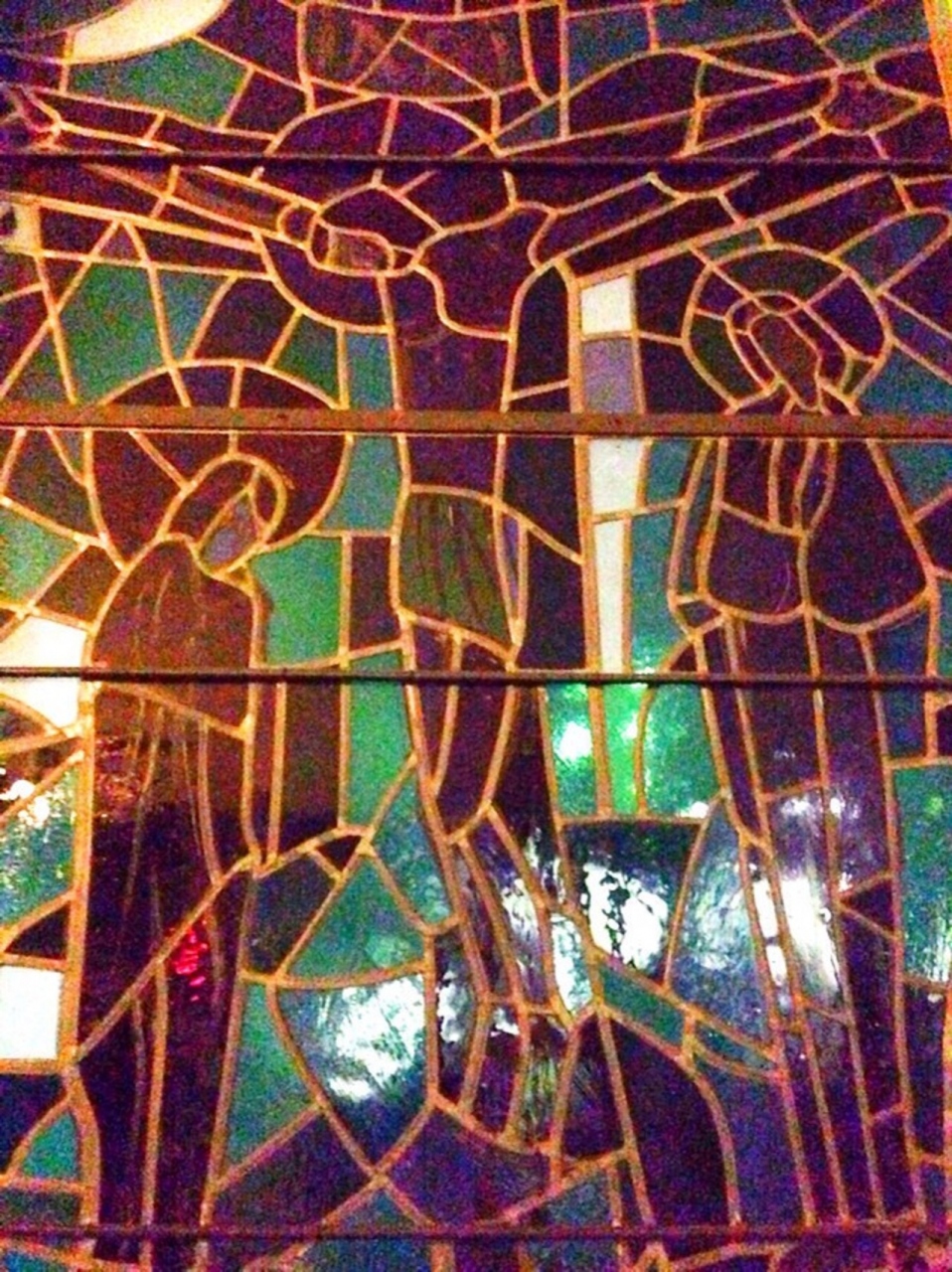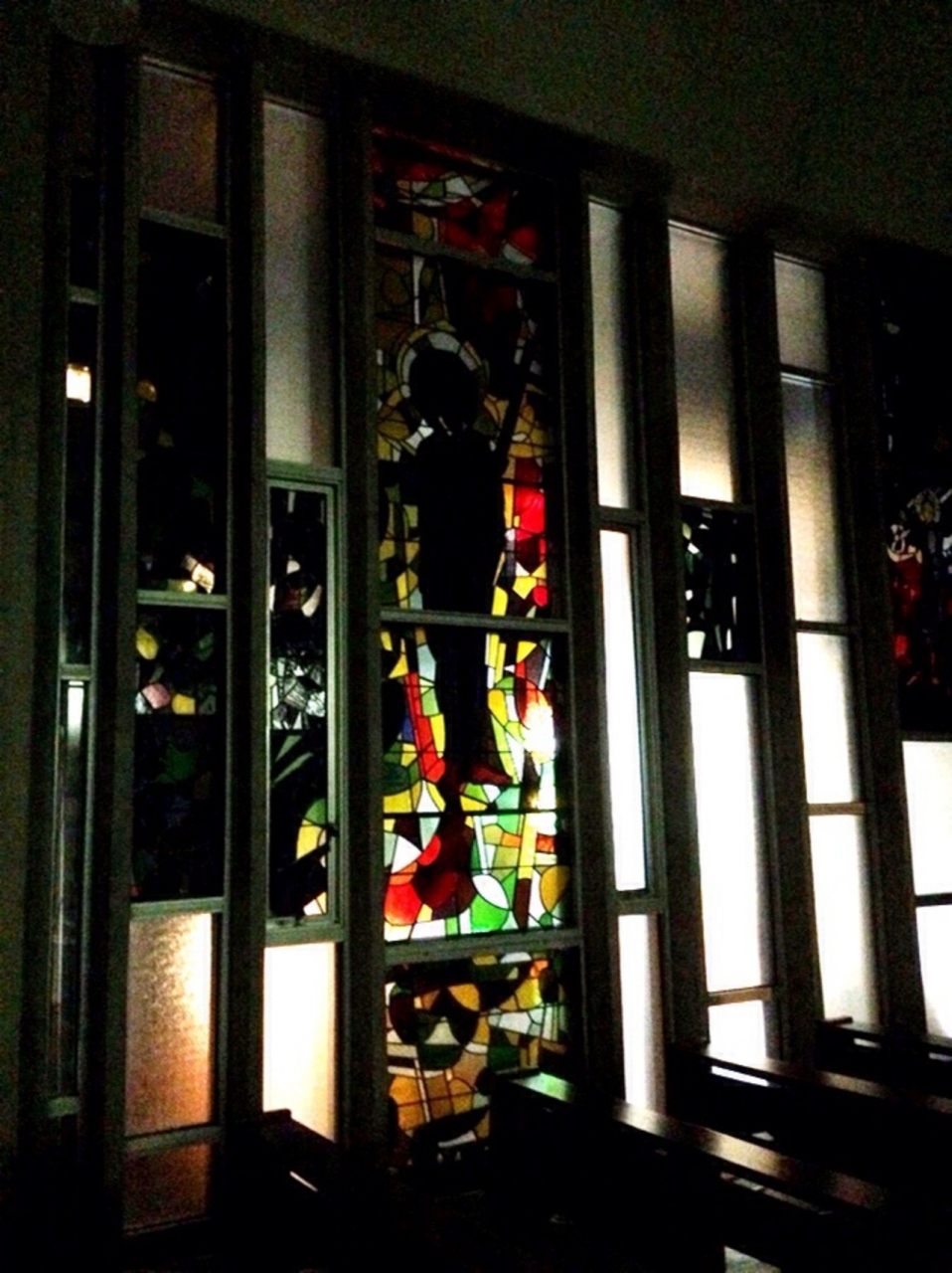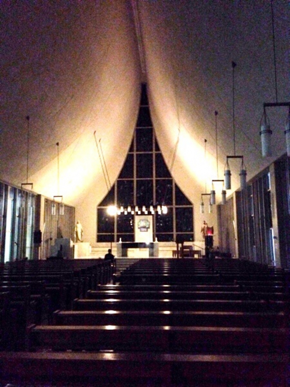 天井の高い、ステンドグラスが美しい協会で、夜中も解放されています。