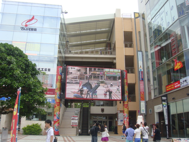 今回宿泊したパームロイヤルナハの目の前、国際通りに面した沖縄では最大級の複合施設です。館内は1階がショッピングエリア、2階が伝統工芸館、3,4階がホールになっています。またてんぶす前の広場には大型LEDビジョンがありバーチャル映像を体験することができ、大勢の観光客が写真を撮っていました。また伝統工芸館では琉球ガラスや陶芸の制作体験などができます。