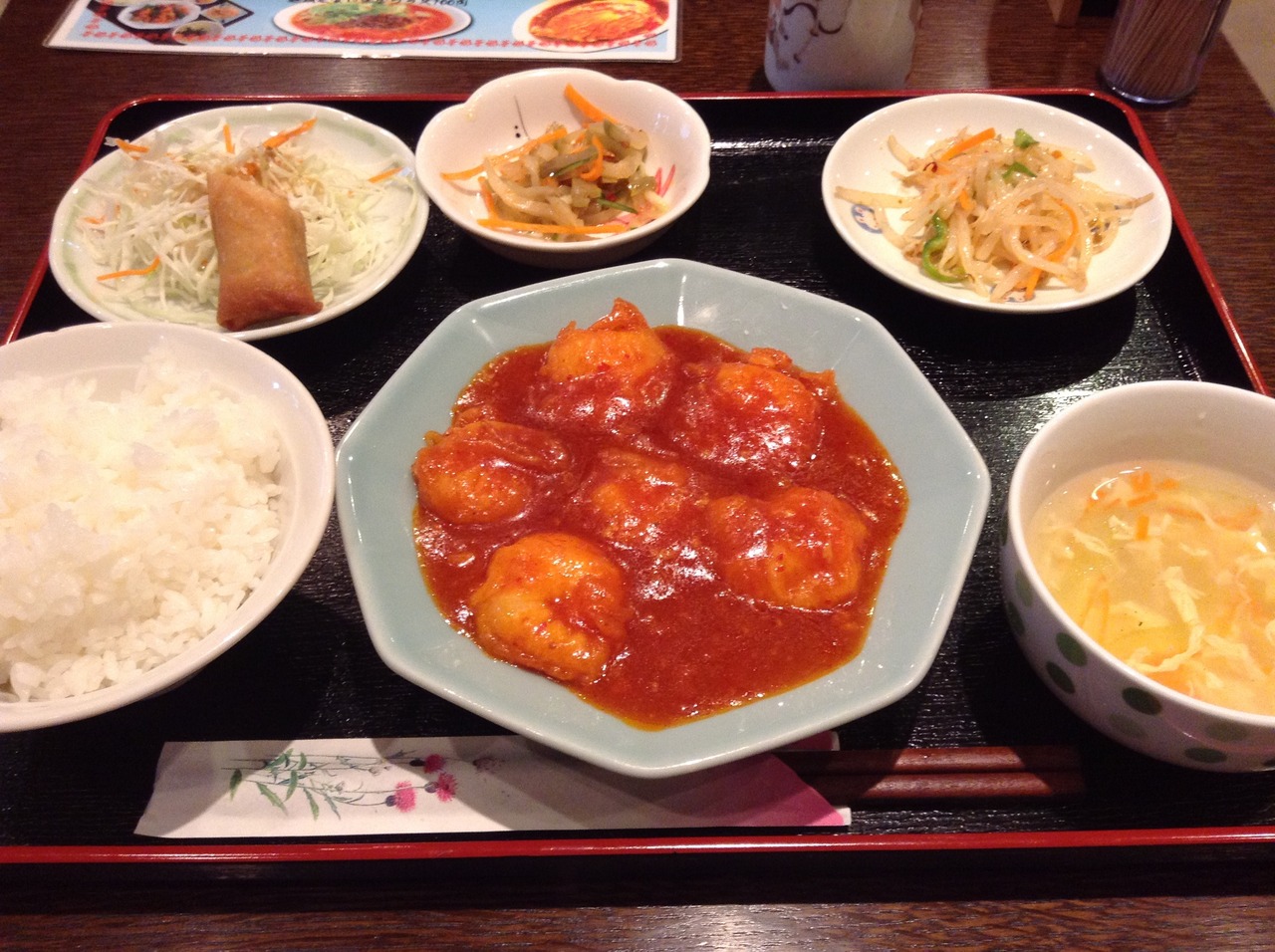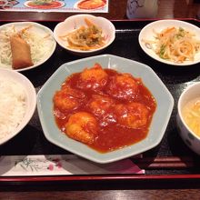今回はランチパスポートを利用し、海老チリ定食をいただきました。