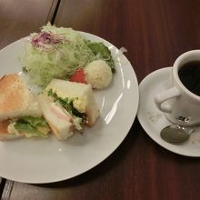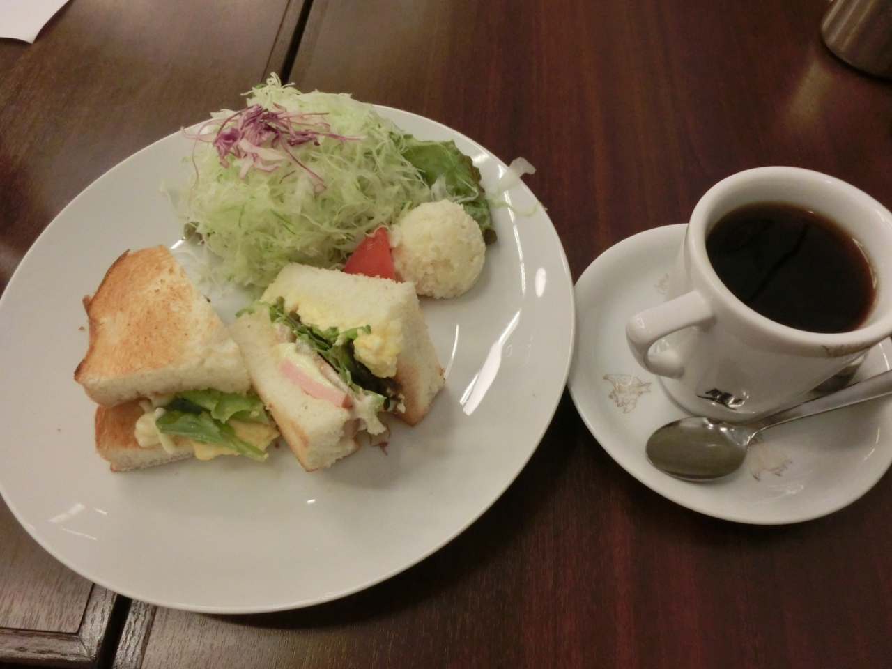 受注生産、やや時間を置いて運ばれたセットのボリュームたるや…あぁた、往生こきましたがな。サラダもトーストもどどどーんと大量ちっく。フレッシュ野菜とロースハム、そして玉子。この680円は納得の内容でした。