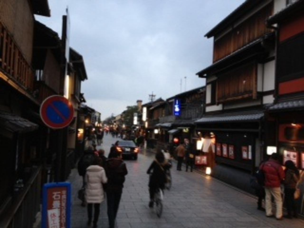 伝統的建造物群保存地区に指定されている祇園の街並みである。もっとも京都らしい雰囲気を醸し出しているのは、古くて使い勝手が悪い建物でもプライドを持って保存してきた所有者の方々のおかげだろう。多くの観光客が訪れたくなるわけである。