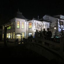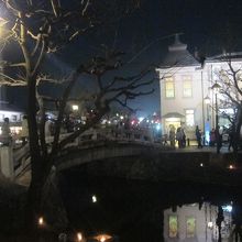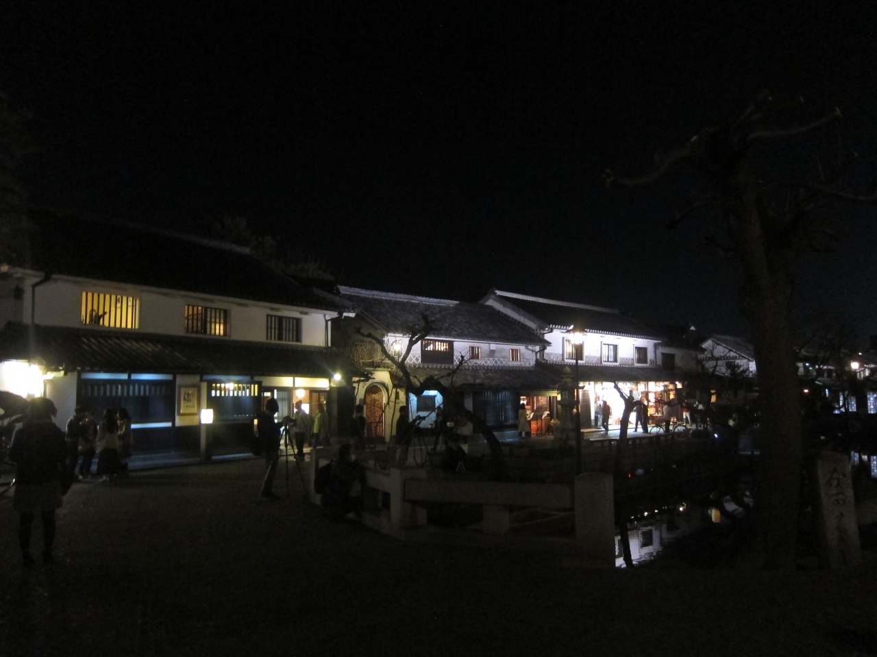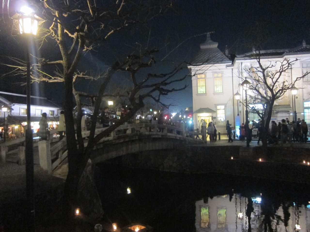 倉敷美観地区の中央、倉敷川がL字に曲がるところにかかる橋です。毎年2月末~3月にかけて行われるイベント、倉敷春宵あかりの時に訪れたところ、橋の前にある洋館、倉敷館のライトアップとその川面に映える様子が、橋の景色と相まって、とても美しかったです。