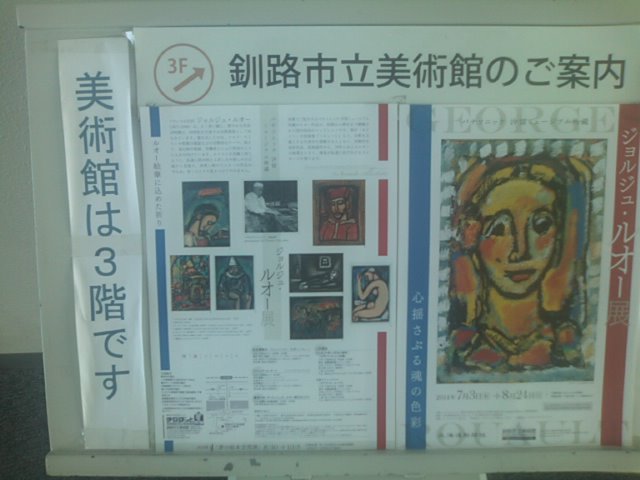 釧路の市立美術館は、単独の建物としてではなく、生涯学習センターの3階に立地しています。エレベーターを出るといきなり入口があって、受付の方と目を合わせることになりますので、知らずに訪問されるとちょっと吃驚されるかもしれません。また、生涯学習センター内には市民ギャラリーなどもあって、こちらも結構見応えがありますので、展望室や美術館巡りのついでに足を運んでみることをお勧め致します。