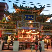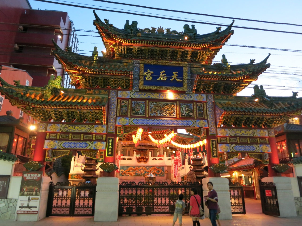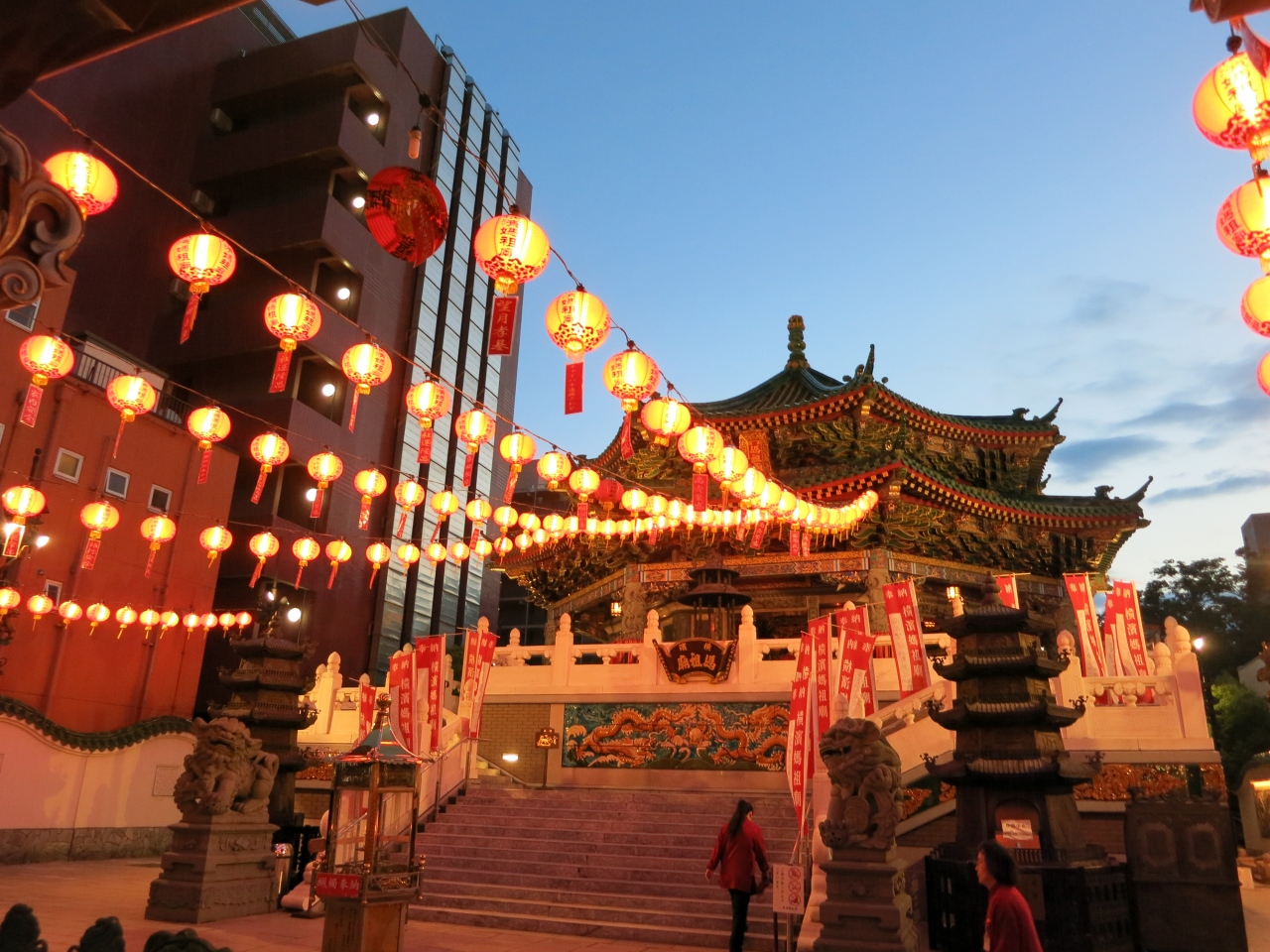 横浜元町から朱雀門を通って中華街に入り、南門シルクロードを直進すると左手に横浜媽祖廟があります。夜だったので提灯に灯が灯り独特な雰囲気があります。天后とも言われる媽祖は航海安全の守護神で、長崎、マカオにも媽祖廟がありました。