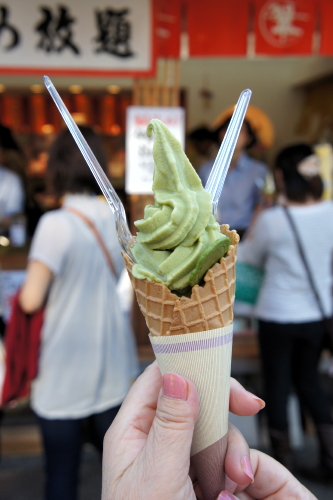 畳張りの所でお茶を出してくれるので、その場で食べられます。