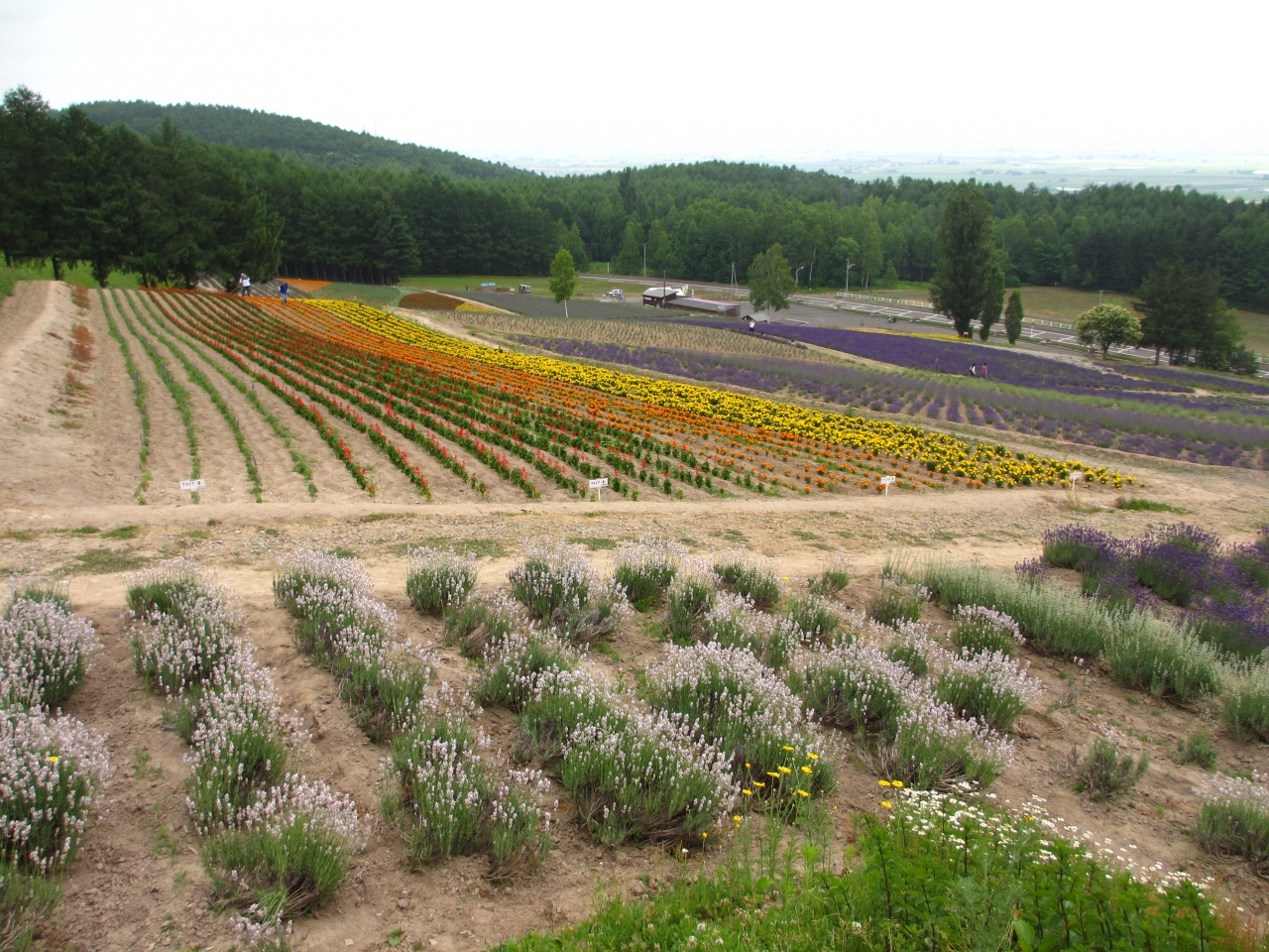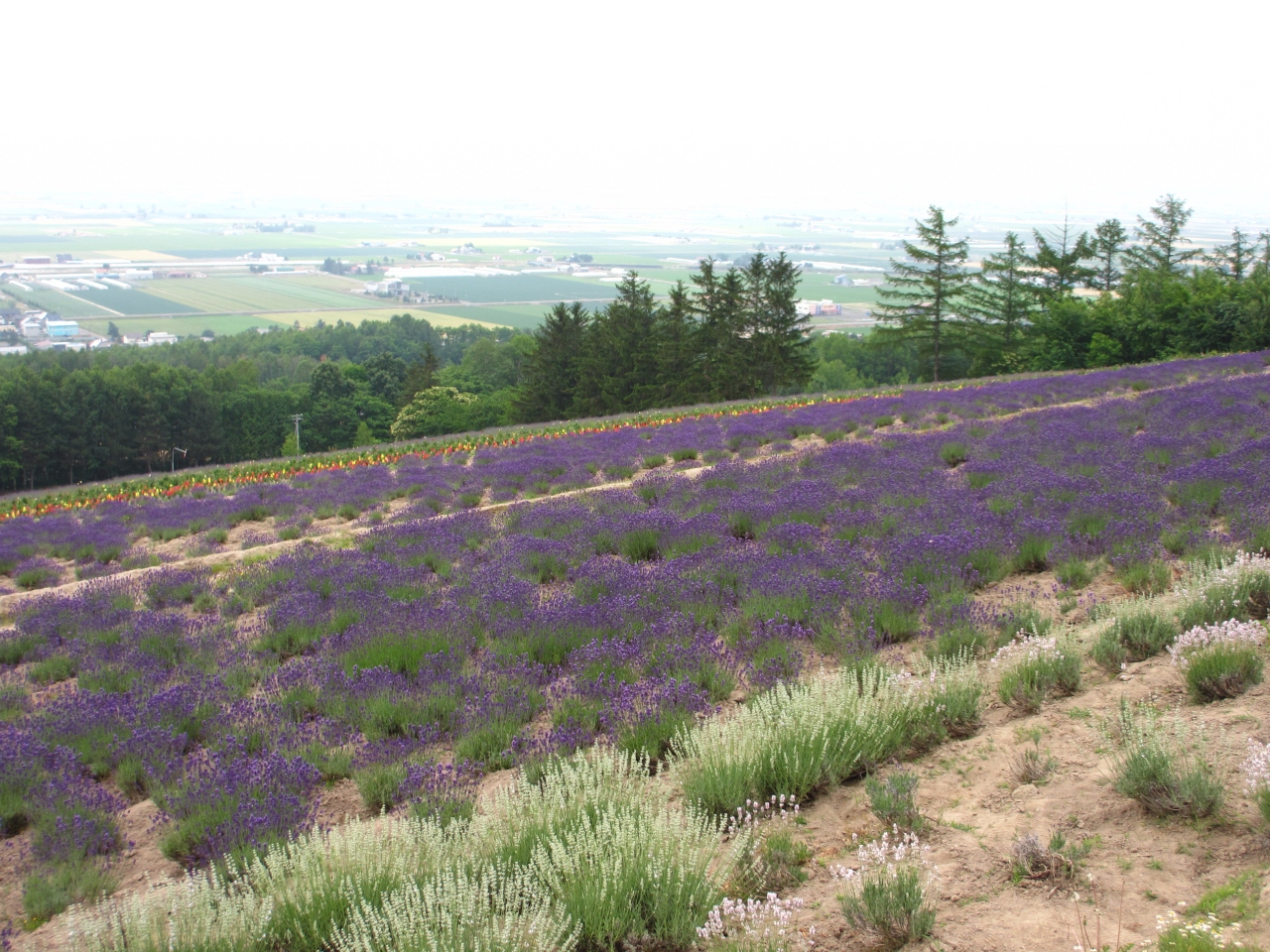 花を見ながら丘を登るとだんだん富良野の平野が見えて来ます。