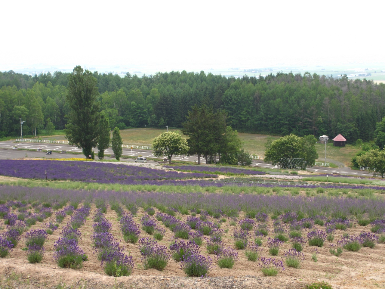 ラベンダー園は丘にあり、広いです。いろいろな種類のラベンダーが見られました。