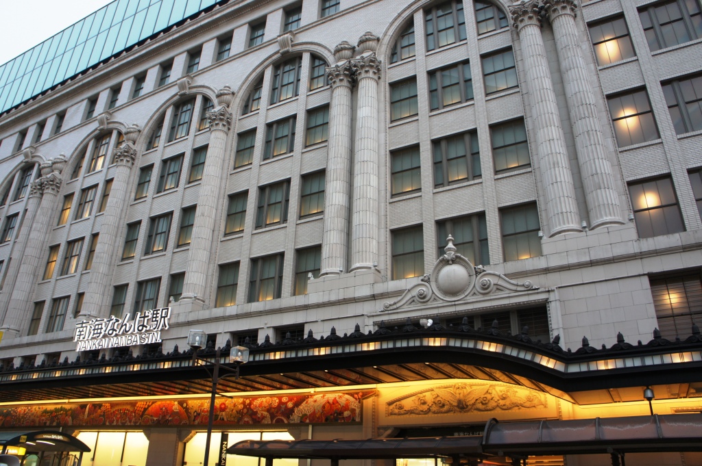 一般には大阪高島屋でしょうけど、そのビルは古くて造りになかなかの趣があります。南海ビルディングというテナントビルで1932年竣工。「ローマ建築の古典性を忠実に再現」「記念碑的建築」などの評価もあるようです。確かに縦に筋が入った円柱の柱や壁の意匠はパリ辺りのデパートを思い起こします。まあ、周辺の雰囲気が違いすぎるけど。実は大阪のというより、ナンバの高島屋は結構好きなデパートなんですよね。雰囲気が。ただ、あまり買う物がないんだよなあ、実際。地下鉄で到着することが多いので、外から眺めたことはありませんでした。いやーそんな歴史的な建物だったとは。ホント新発見でした。