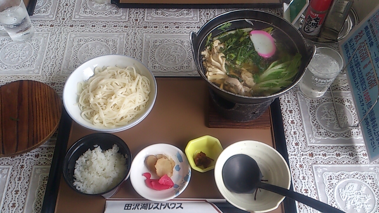 秋田名物の稲庭うどん鍋を注文。スープのダシが効いてて最高にウマかった( ´ ▽ ` )