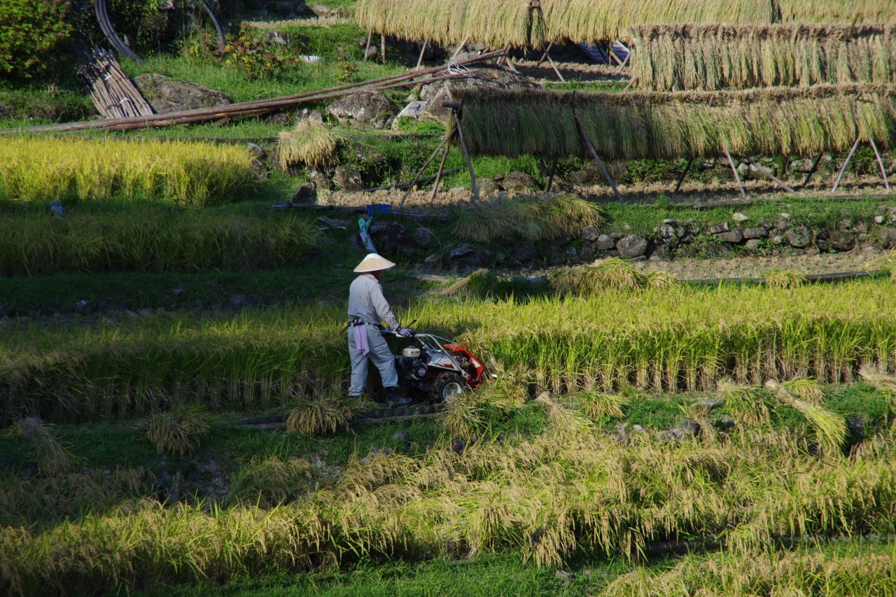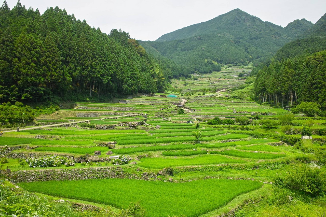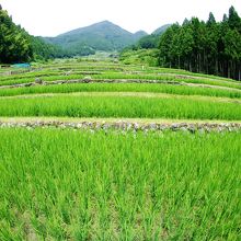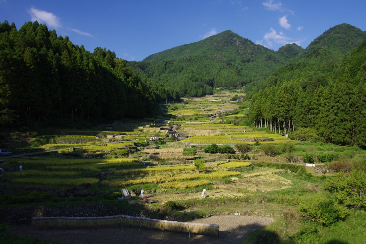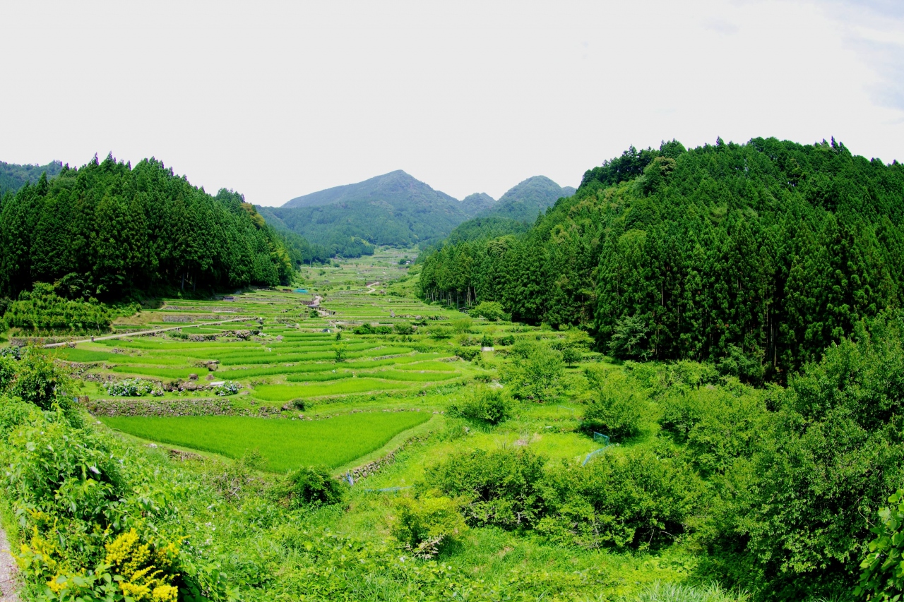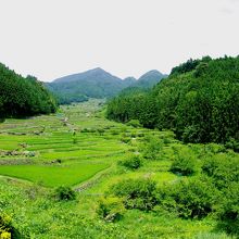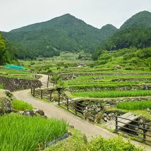 千枚田だけの評価だと他の有名なところに比べ見映え的に少々地味かもしれません。ここの良さはバックにある鞍掛山と中央部を流れる小川と、いわゆる山・川・森・たんぼがセットになった日本の原風景そのものって感じなところと思います。あぜ道に足を踏み入れた際、突然感じたたんぼの匂いで一気に小学生のころにたんぼでオタマジャクシを採っていた記憶が呼び起されました。たんぼの匂いって日本全国同じなんですね、あたりまえか…