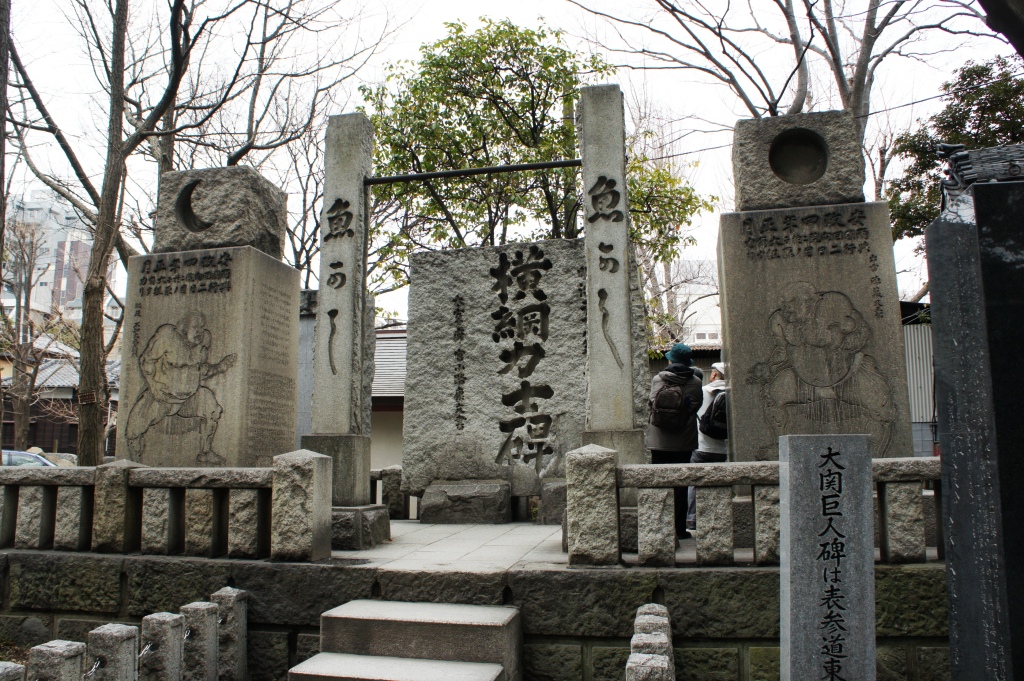 東京・深川の富岡八幡宮の境内に横綱力士碑がありました。大きさは高さ3・5メートル、幅3メートル、重量は20トン。いかにも大相撲らしい太く力強い字で「横綱力士碑」と刻まれており、大きさと相まっていかにも横綱の碑になってました。富岡八幡宮は相撲との縁が深く、1684年、幕府が勧進相撲の開催を許可しましたが、その場所が富岡八幡宮の境内だったとのこと。以降約100年にわたって春と秋に開かれ、番付など現代の大相撲につながる制度が確立されました。明治33年、第12代横綱陣幕久五郎を発起人に歴代横綱を顕彰するこの碑が建立されました。新しい横綱が誕生した時には、相撲協会立会いのもと刻名式がおこなわれているそうです。