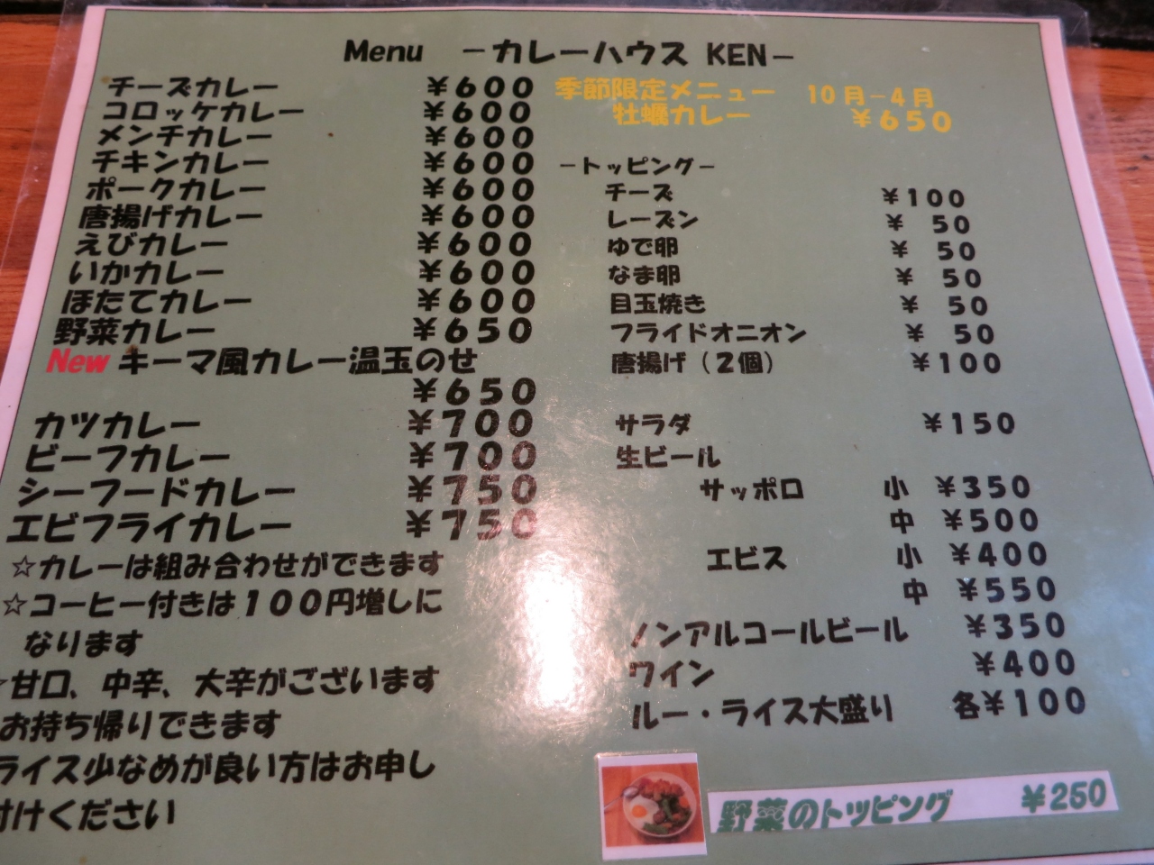横浜 青葉台つつじが丘の坂の途中にある、昼だけ営業しているカレーハウスで、夜はお好み焼き屋に様変わりします。奥さんが一人で切り盛りしており、カツ、コロッケ、メンチなどは作り置きではなくその場で揚げるのでサクサクです。辛さも選べ、土曜の昼は待つこともあります。また、わざわざ遠くから食べに来られる方も多い人気店です。