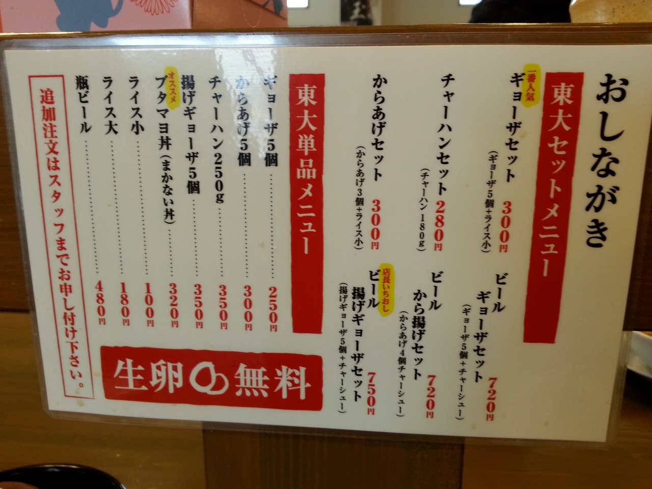 生卵いくつでも無料サービス