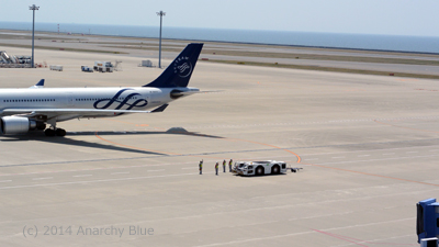 全体が見渡せるので、駐機場⇔滑走路間の移動もずっと見続けられます。