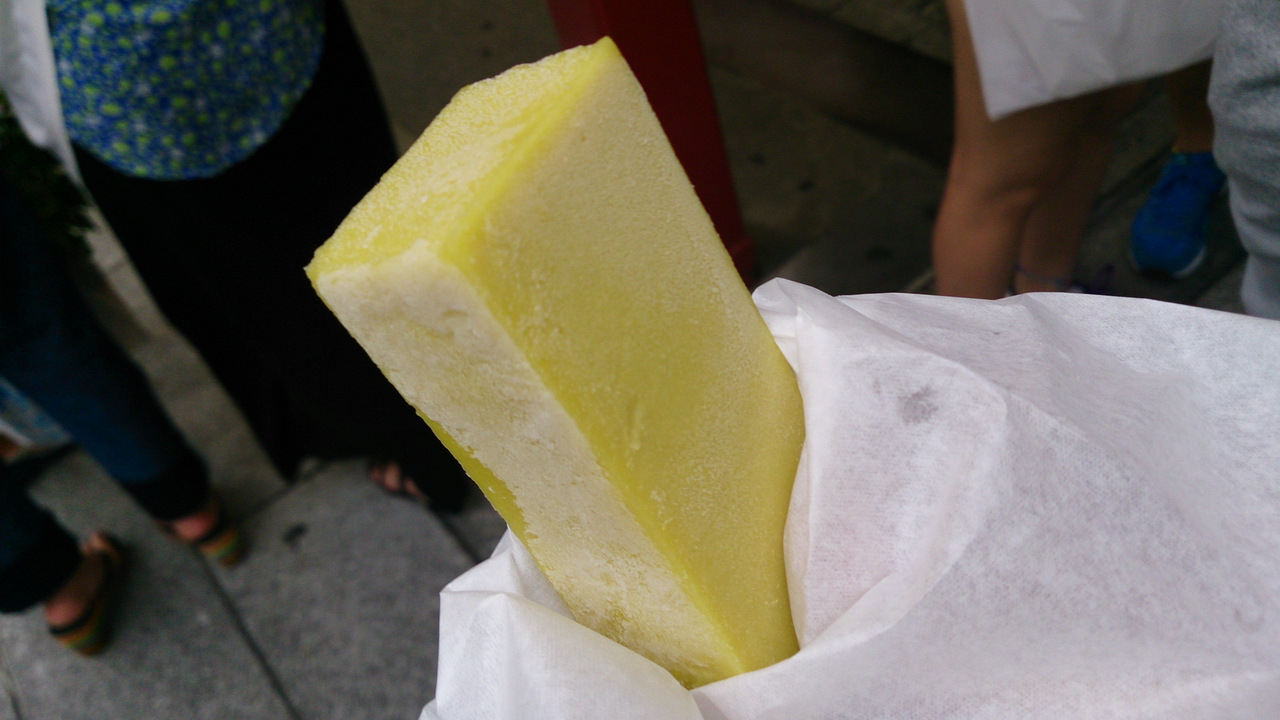 固いですがひんやりおいしく、しつこくない甘さが私の好みでした。