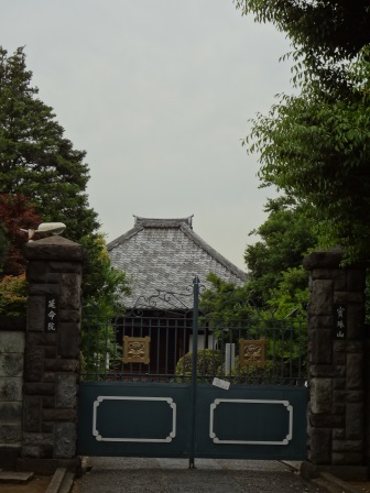 こちら延命院は日蓮宗のお寺です。境内には樹齢600年とも推定される巨大な椎の木があり、都の天然記念物に指定されています。