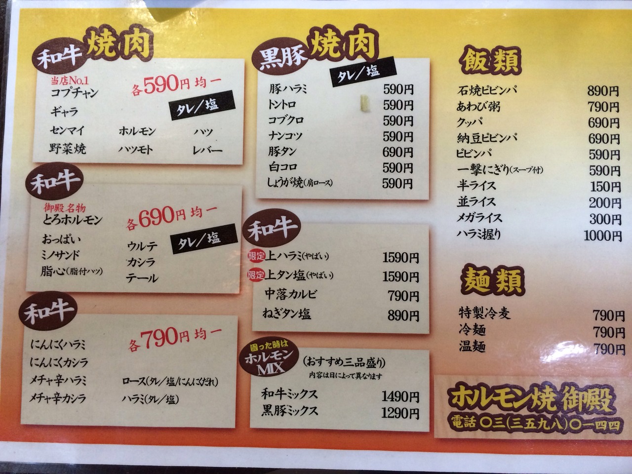 ホルモン類にハラミなど食べました。特に安いわけではありませんが、和牛を使っているので美味しく、雰囲気も楽しいと思います。
