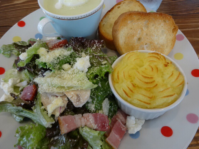 辻堂駅直結のテラスモール2階入り口を入ったすぐの所にあるカフェです。Cath Kidston の雰囲気そのままのかわいい店内です。少し早目にランチに行ったので空いていました。ランチプレートは種類が多くドリンクもついてお得です。お隣にはCatsu Kidston の店舗があるのでショッピングも楽しめます。