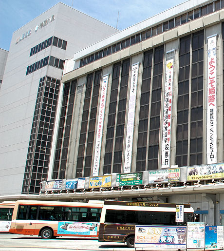 JR姫路駅を出て左手、山陽百貨店の建物の中に神姫バスのターミナルがあります。