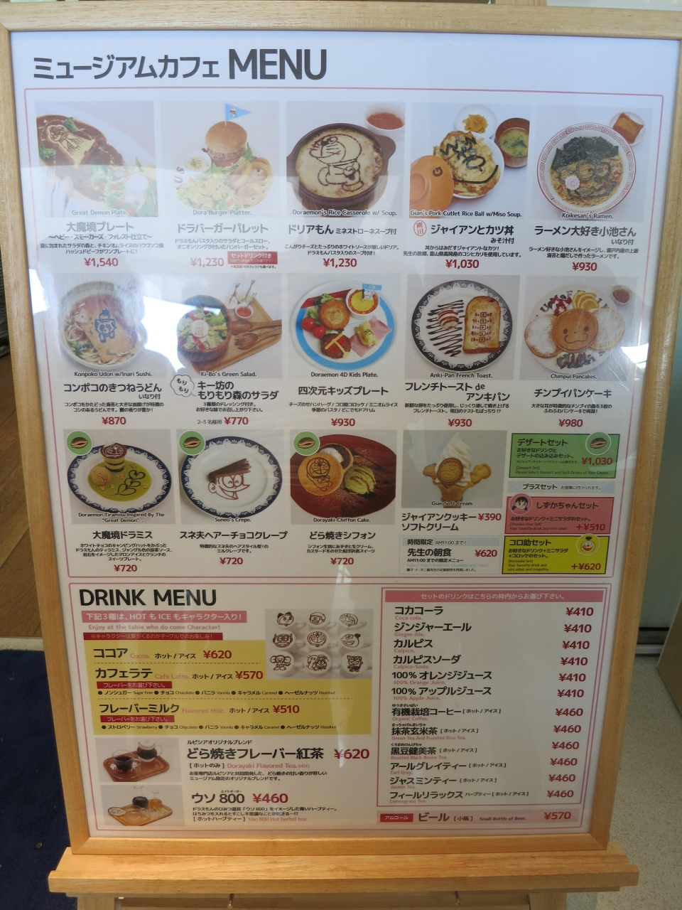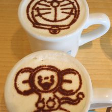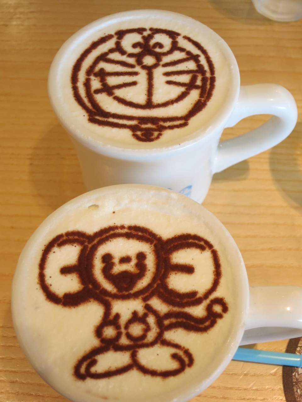 藤子・F・不二雄ミュージアム ミュージアムの屋上にカフェは人気でいつも30分以上待ちになります。なので、入館五は先にエレベータでカフェに行って予約してから見学し、カフェに行って待つ方が効率的です。カフェラテを頼むと、ラテアートでキャラクターを描いてくれますが、図柄は選べません。