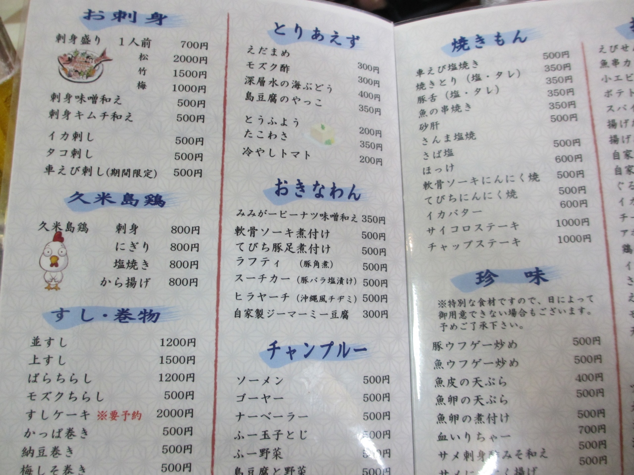 泡盛やオリオンビールをたらふく飲んでも1人3000円以下と格安でした。