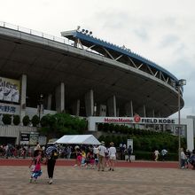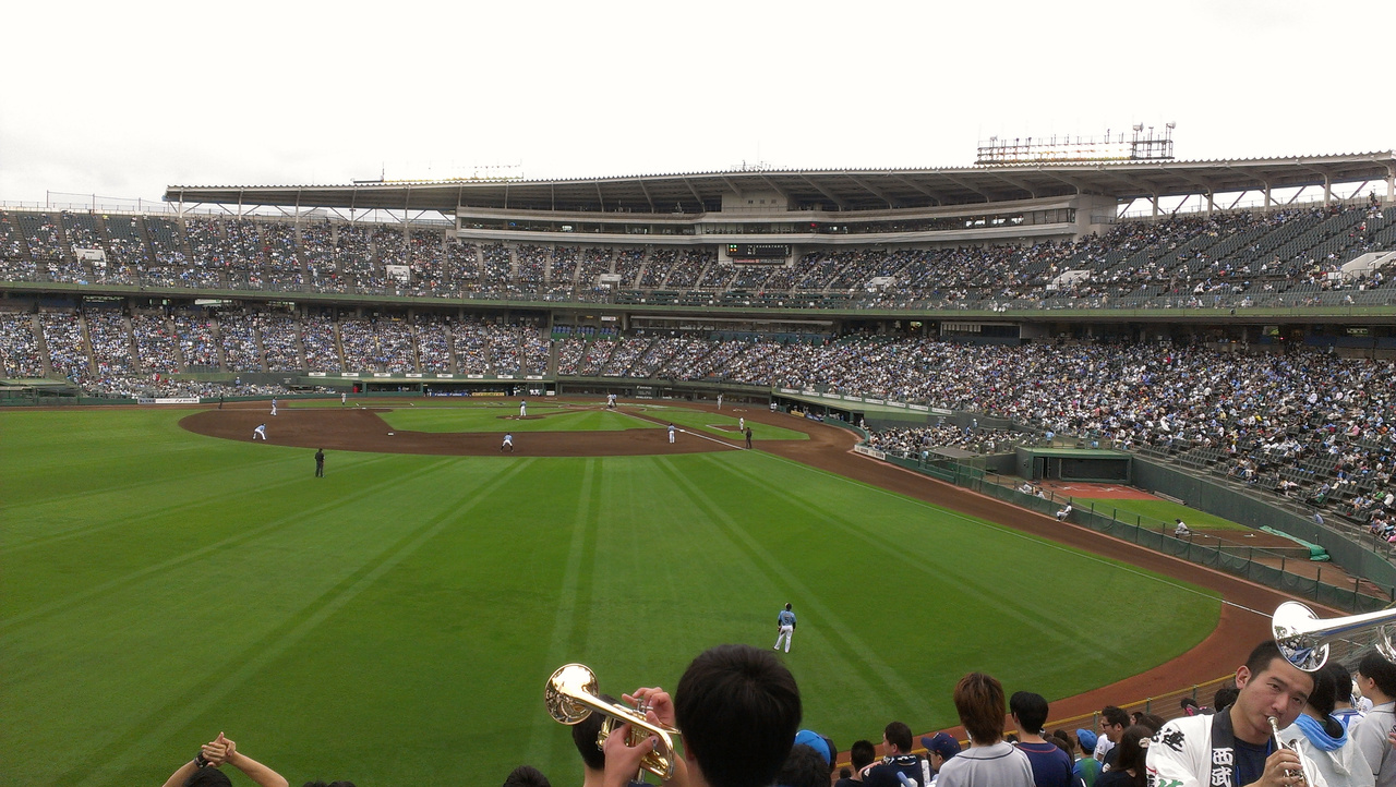 エンターテイメント性は少ないですが、天然芝の美しいグランドでスタンドの傾斜がベストな角度で見やすく、とてもよい球場です。