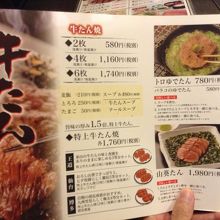 牛たんを焼いたランチ定食は、1280円からでした。今度試してみたいです。