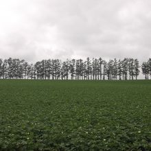 道端に車を止めて遠くの丘のマイルドセブンのCMで使われた木々を眺めます。