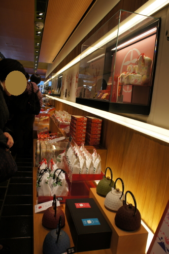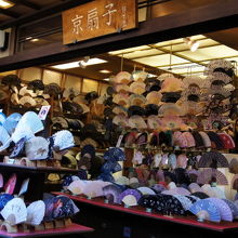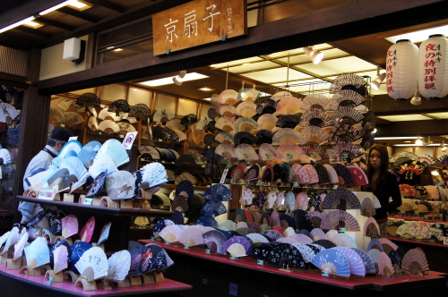 扇子屋さんとか、京都らしい生地のクリスマスデイスプレイとか、