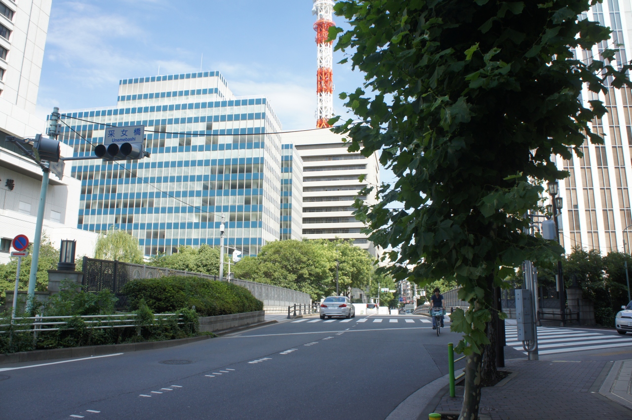 采女橋は、築地川にかかる橋の一つ。江戸時代の初めには松平采女正の屋敷があったのですが、享保の大火で焼けた後は、火除地になって采女が原と呼ばれていたので、橋名の由来もここからのよう。