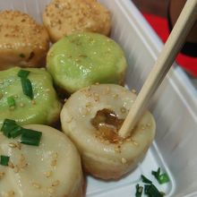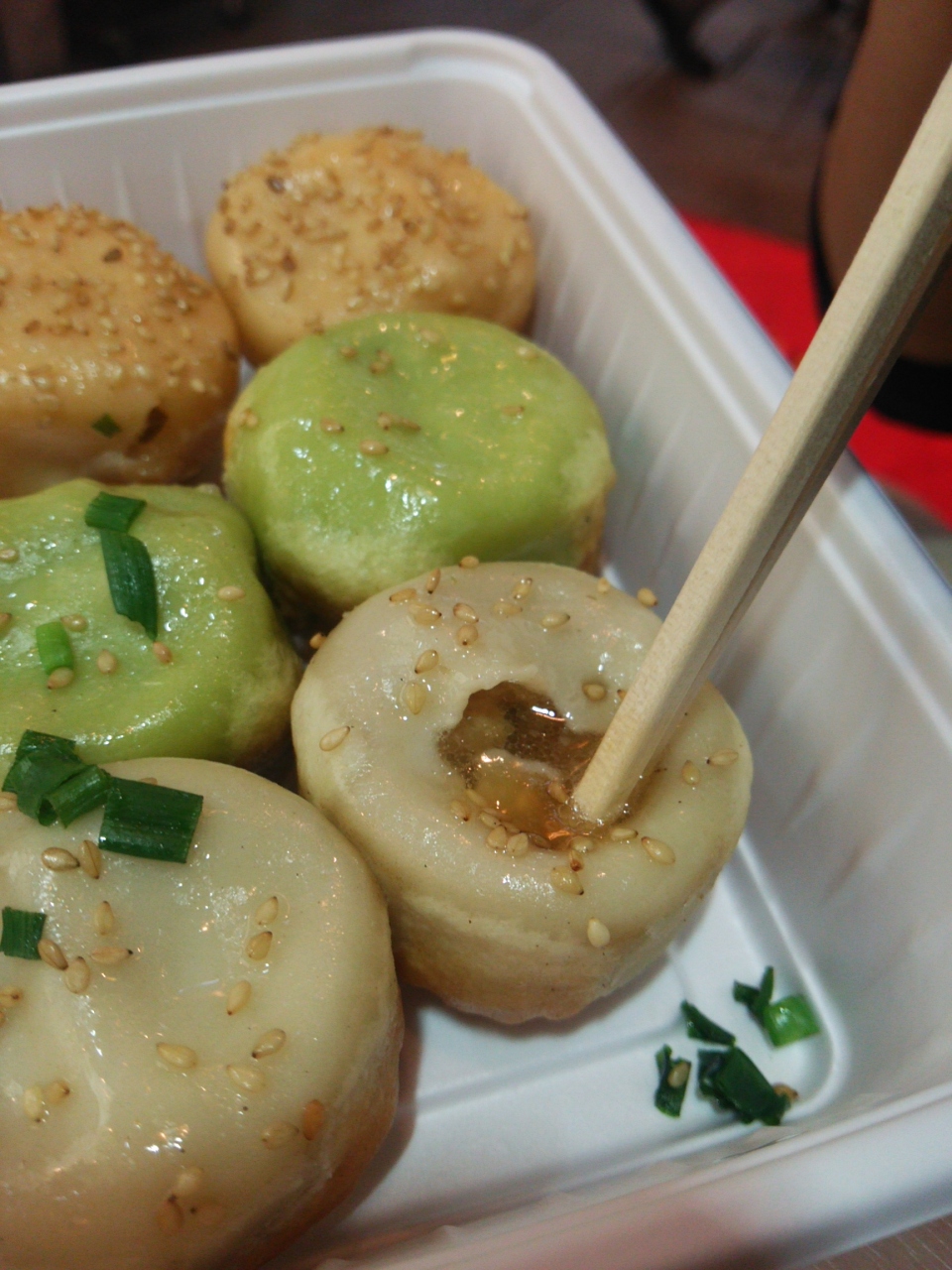 正宗生煎包(白)、ヒスイ(緑)、フカヒレ(オレンジ)の3種セットで800円くらいでした!