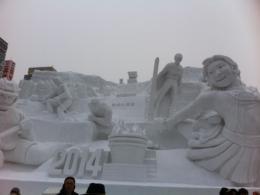地下歩道を通り会場まで行きました。地上はツルツルなので滑らないように注意です。雪像は想像していたよりもずっと大きくて迫力あります。一度は見た方がいいです。土曜日だったこともあり、とてもこんでいました。ステージではクイズ大会などイベントもあり、家族で楽しめると思います。