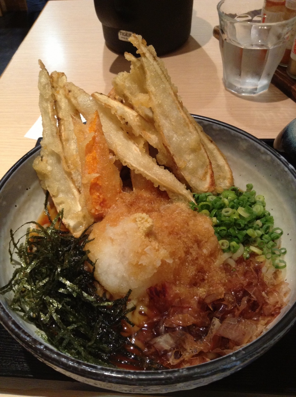 大根おろし、葱、ごぼう天がよく合います。思っていたより美味しかったです。
