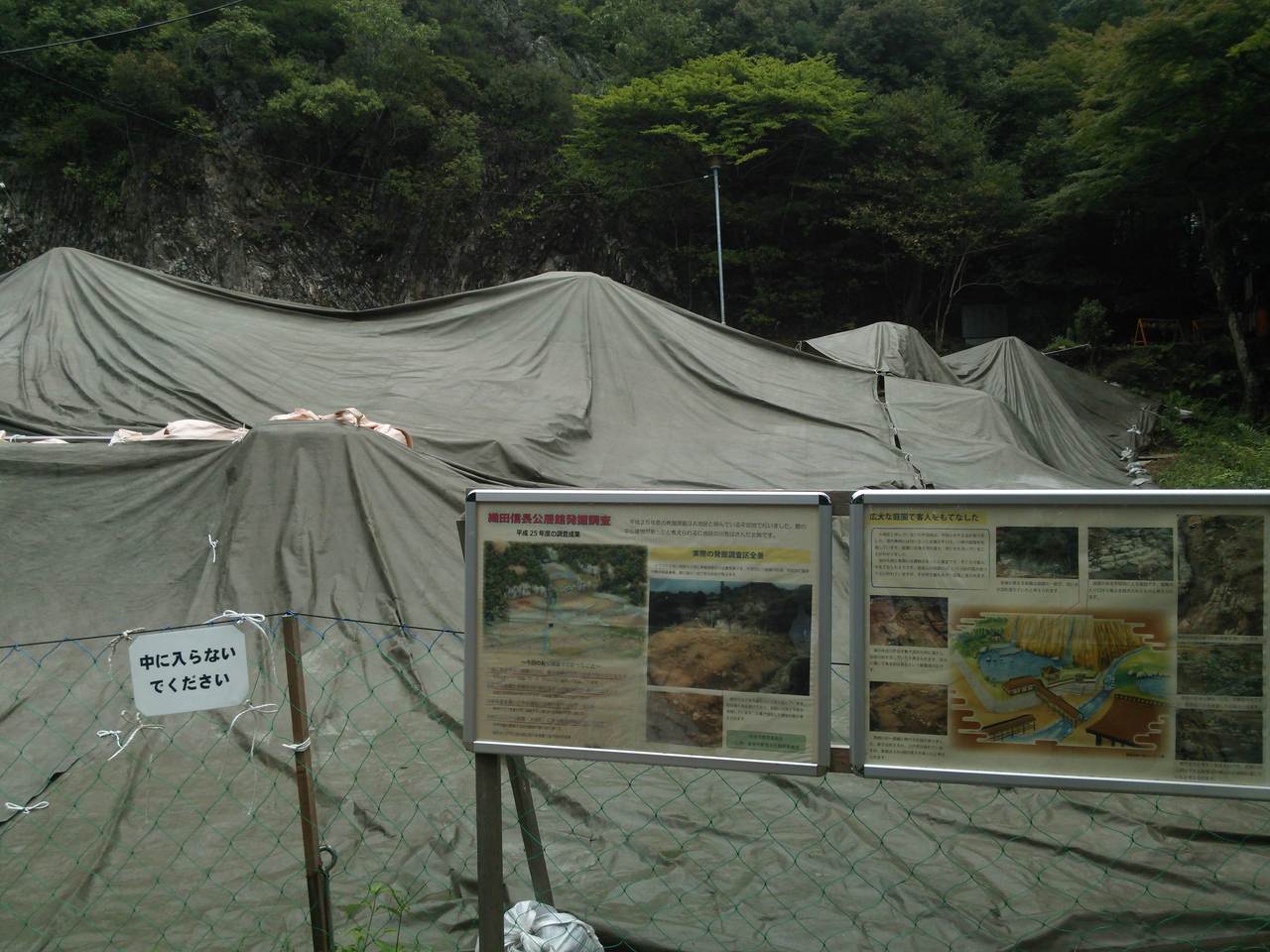 岐阜公園のロープウェイの軌道の、ちょうど真下辺りに、織田信長公居館跡があります。