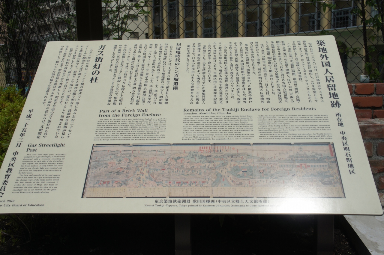 築地居留地は横浜や神戸などとは異なり、海外からの宣教師・医師・教師などの多くの知識人が居住して教会や学校が建ち、日本の近代化に大きな影響を与えた一地域だったということです。