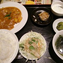 今回はエビチリのセットを注文。大ぶりのエビで食べ応えがあり