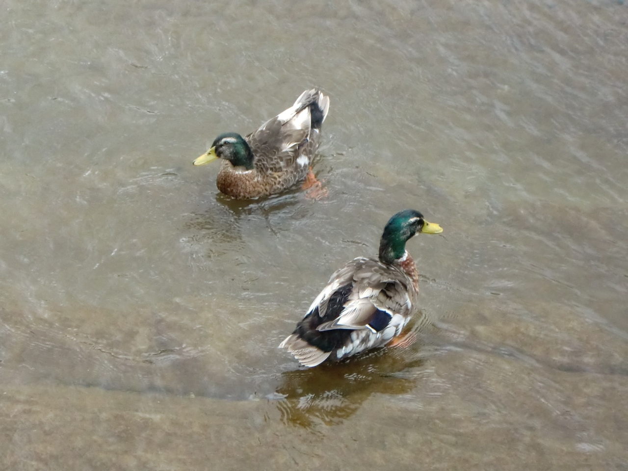 桜の名所でもあり、たくさんの人が訪れて、水辺には、カモも遊びにきています。