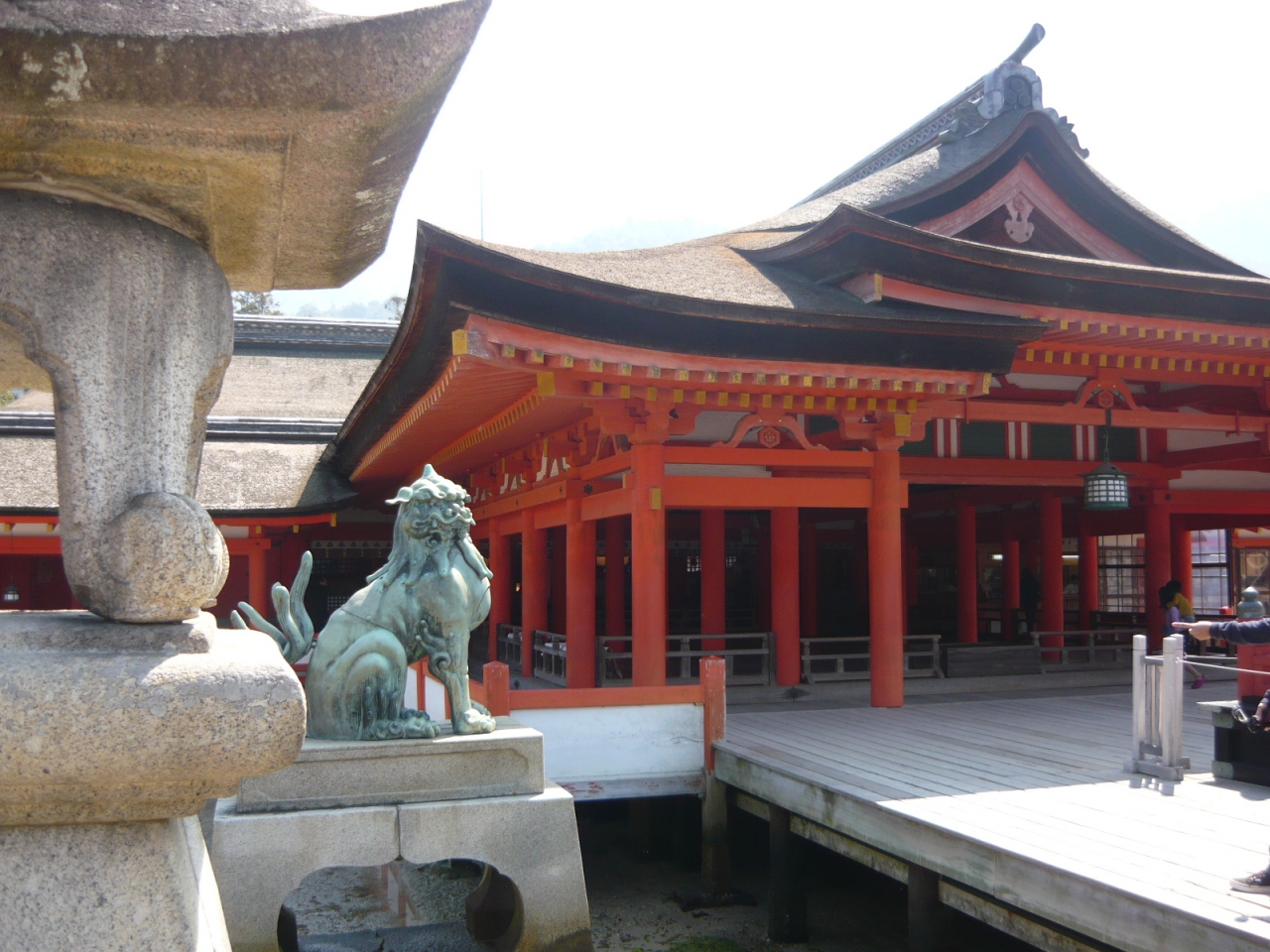 フェリーに乗って10分程で宮島について、船着場から歩いて10分程で厳島神社に到着しました。潮が満ちている状態の回廊を歩き、大鳥居を見ることが出来ました。