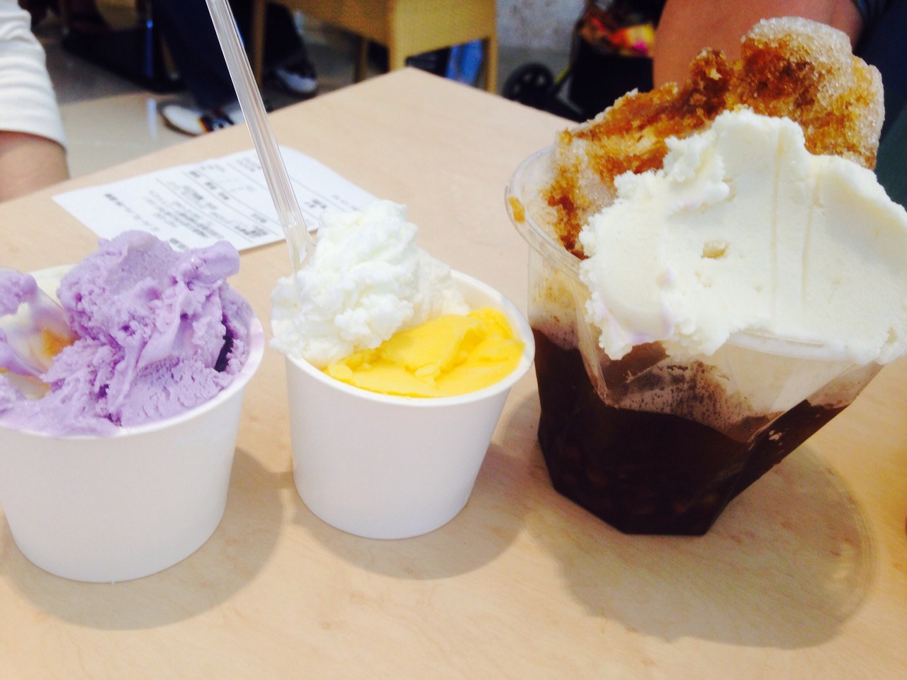 一時間前に、空港へ向かい、ミルミルジェラートを頂きました。そのあとお土産屋さんをフラフラ。もっとお店が少ないと思いましたが、シーサー、カマボコ、ミンサー織、お菓子にジーマミー豆腐、ドレッシングなど調味料までダイビングなどで忙しい人も、最後にここで買えるとおもいますよ。