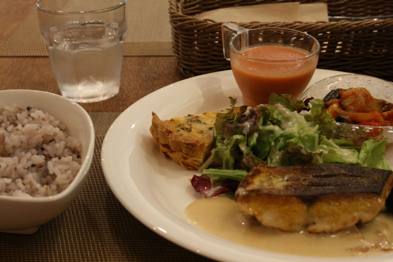 パンではなく、五穀米を選択し、デザートはマンゴプリンでした。