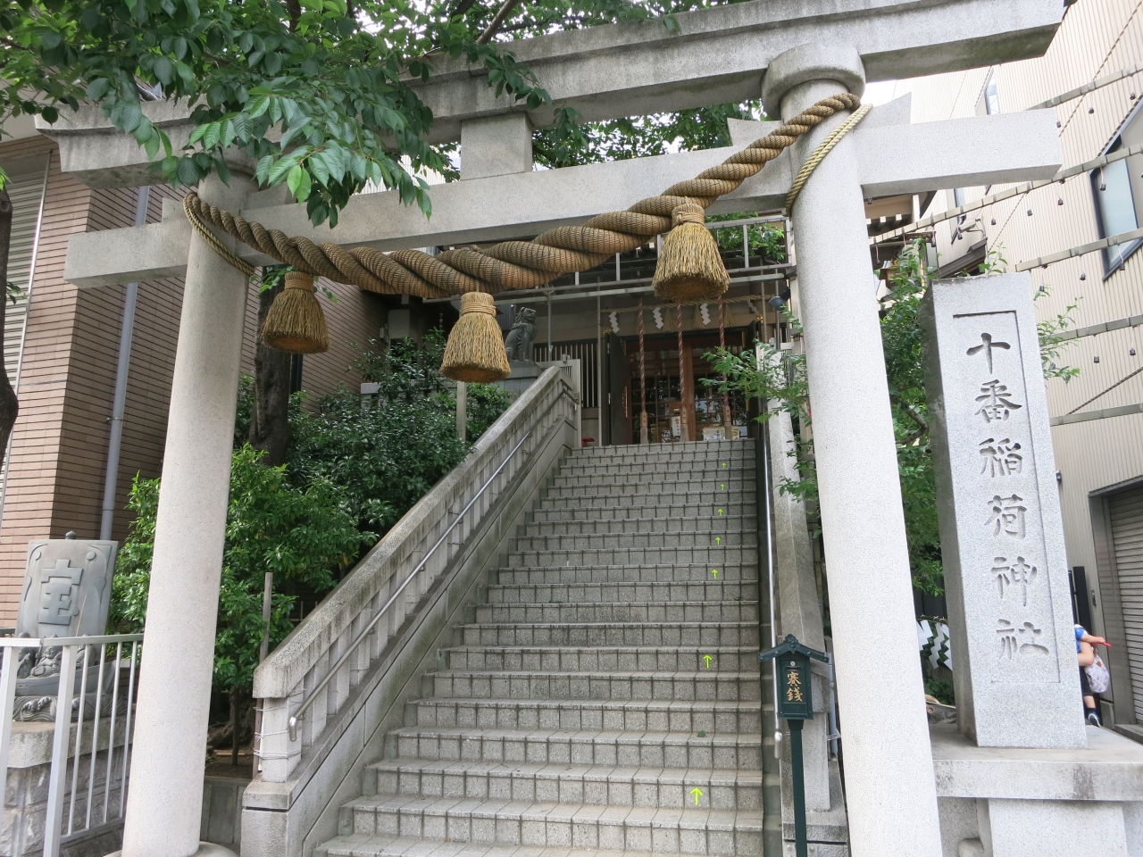 麻布十番にあり「カエルさん」で有名なパワースポットで、訪れる人が多い神社です。正面の鳥居の左手に七福神の乗った宝船、右手にカエルの像があり、カエルの語呂にあわせて「若返る」など「~かえる」のご利益があると信じられています。