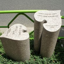ハート形の葉っぱの形をした2本の石柱が組み合わさったかわいらしい石碑です。