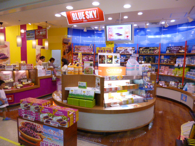 那覇空港ターミナルビル2階南ウイングの手荷物検査場手前に“ブルースカイ(出発ロビー2号店)”があります。
