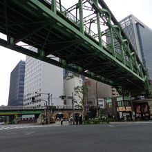 秋葉原電気街の南東の端に位置し、上流には聖橋と総武線神田川橋梁、