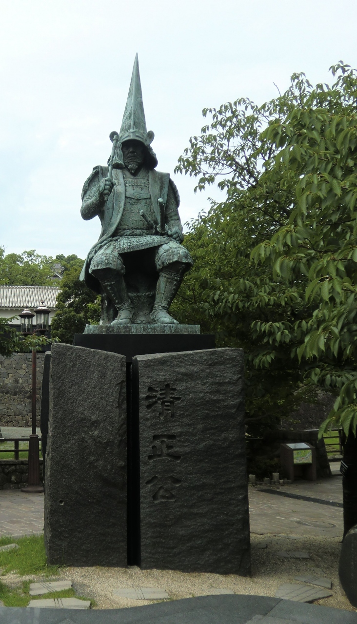 熊本城の入口の一つである行幸橋のすぐ近くにある、熊本城を築城した加藤清正の銅像です。