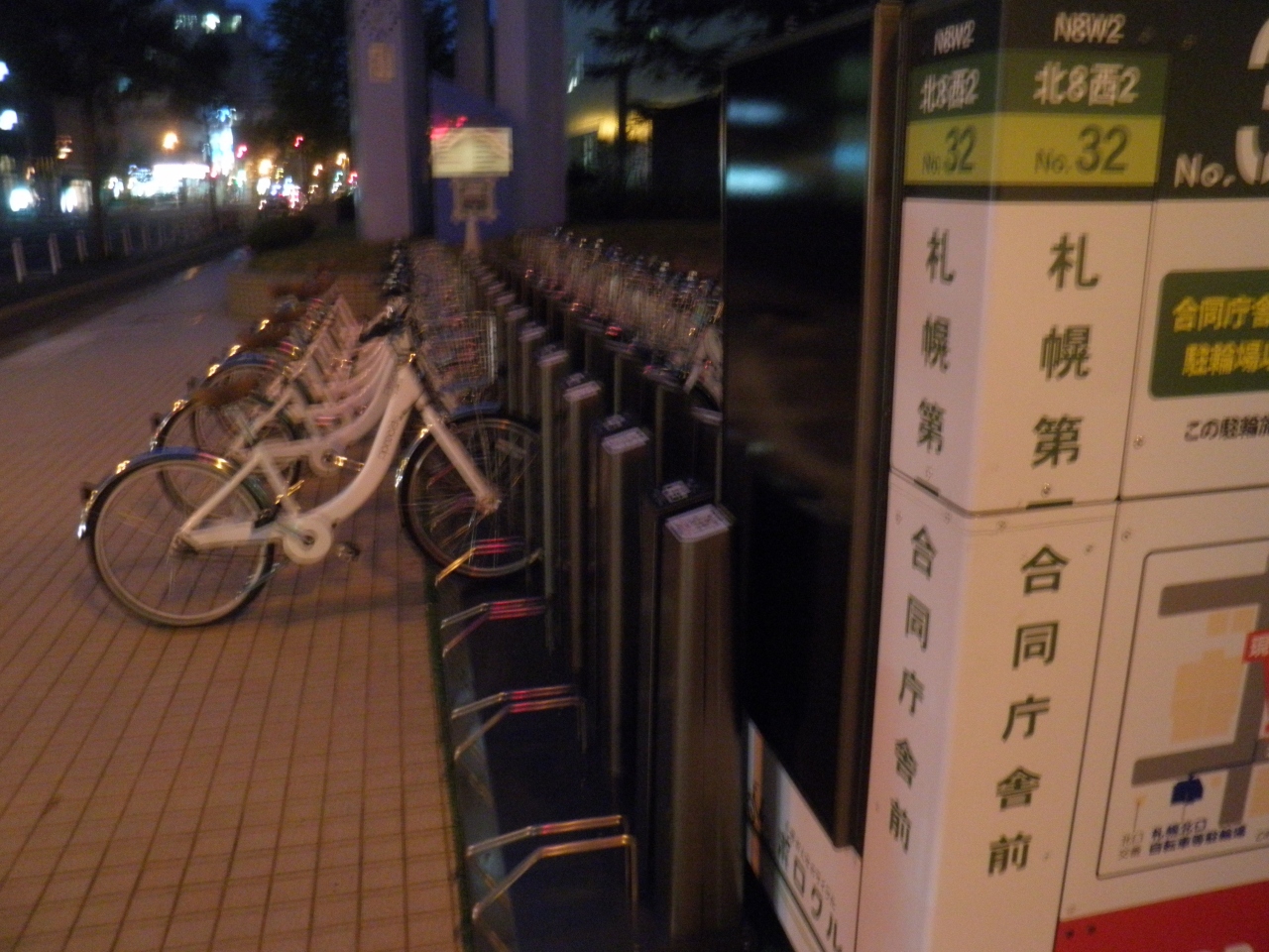 JR札幌駅の北口の向かい側には、札幌第一合同庁舎の大きな建物があります。 この建物の北口側には、たくさん台数の停まっているポロクルスタンドがあります。やたら広いけど、公共交通のない北海道大学のキャンパスを観光するときいいかもしれません。