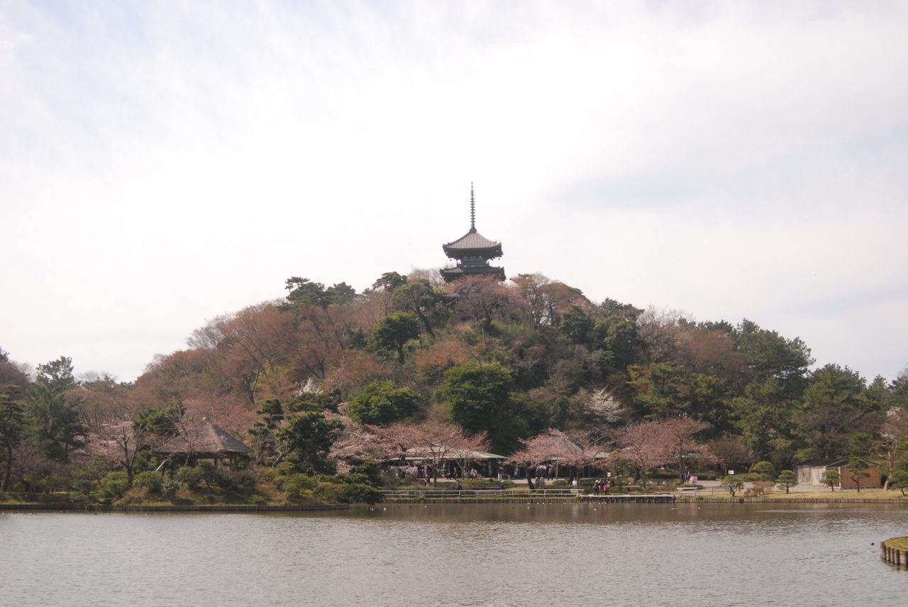 池の周りを散策しながら三重の塔を目指すのですが途中坂道があり大変急ですので足元に