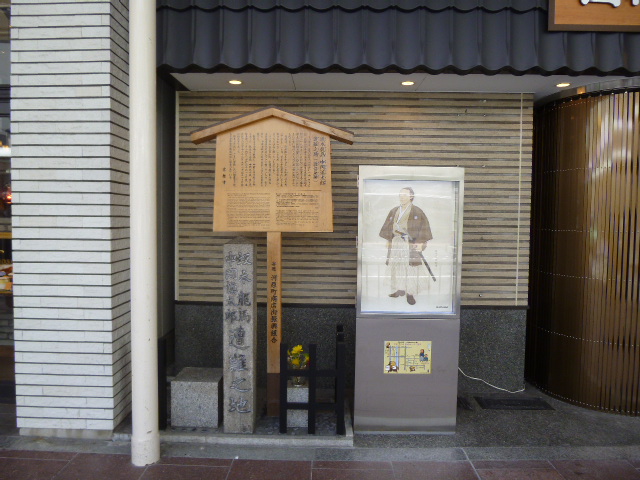 慶応三年(1867)十一月十五日、この地で坂本龍馬と中岡慎太郎は刺客に襲撃される。龍馬はその場で、中岡慎太郎も二日後に絶命。大政奉還が行われ王政復古の大号令が発せられる間のまさに歴史の過渡期で生涯を終えた。