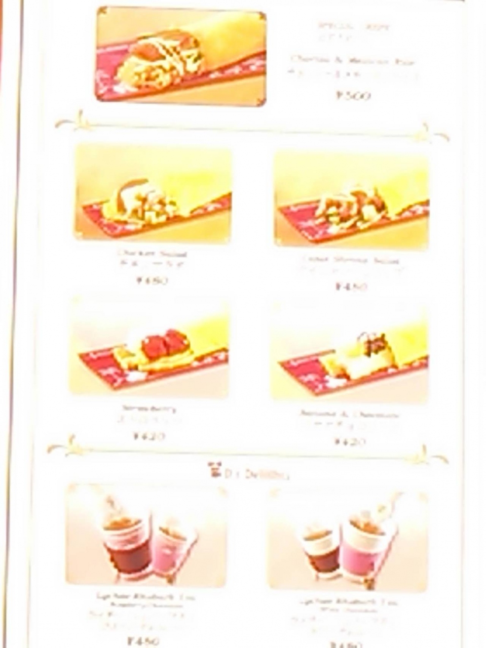 甘いデザートのイチゴやバナナ、チョコ等もあるが食事として成立する、チキンやエビ等入ったクレープも美味しい。