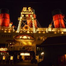 SSコロンビア号は外の景色を利用して、まるで海に浮かんでいるような見え方になっています。